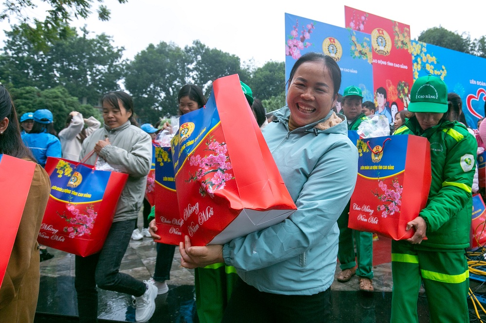 Hoang Thi Giang, a resident of Cao Bang province, shared how she felt when she received a Tet gift, “I’m very happy. I also received a gift from the provincial Trade Union last year. This gift means a lot to my family. It’s true that one bite of food when you’re hungry is better than a whole meal when you’re already full.”
