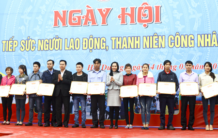 | Outstanding young workers were given presents at the Youth Union's workers festival |