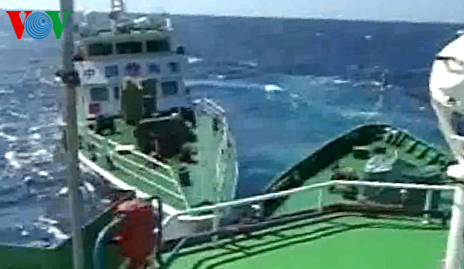 ![]() A Chinese ship broke its stem after thrusting a Vietnamese ship |