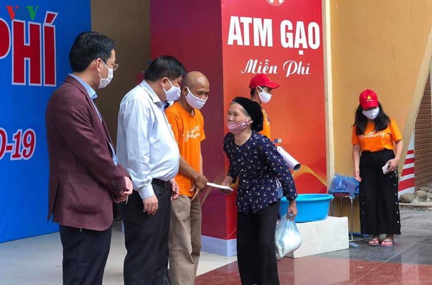 Everyone in society has worked together to combat the epidemic. Some creative individuals have invented new products such as decontamination booths, automatic sanitizer dispensers, and rice ATM machines. Nguyen Manh Hung, Director of the Thai Ha Book company, installed the first rice ATM in Hanoi to support disadvantaged people amid the COVID-19 epidemic. Hung said: "I had lived through days with nothing to eat. I know many street vendors survive on their daily earnings. Due to social distancing rules, they have had to stay at home and can’t earn a living. I have seen people burst into tears when they received free rice at the ATM."