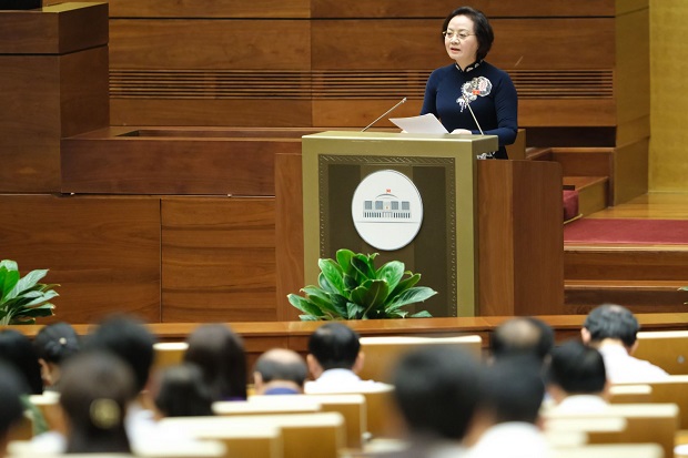 Minister of Home Affairs Pham Thi Thanh Tra speaks at the NA's meeting (photo: quochoi.vn) |