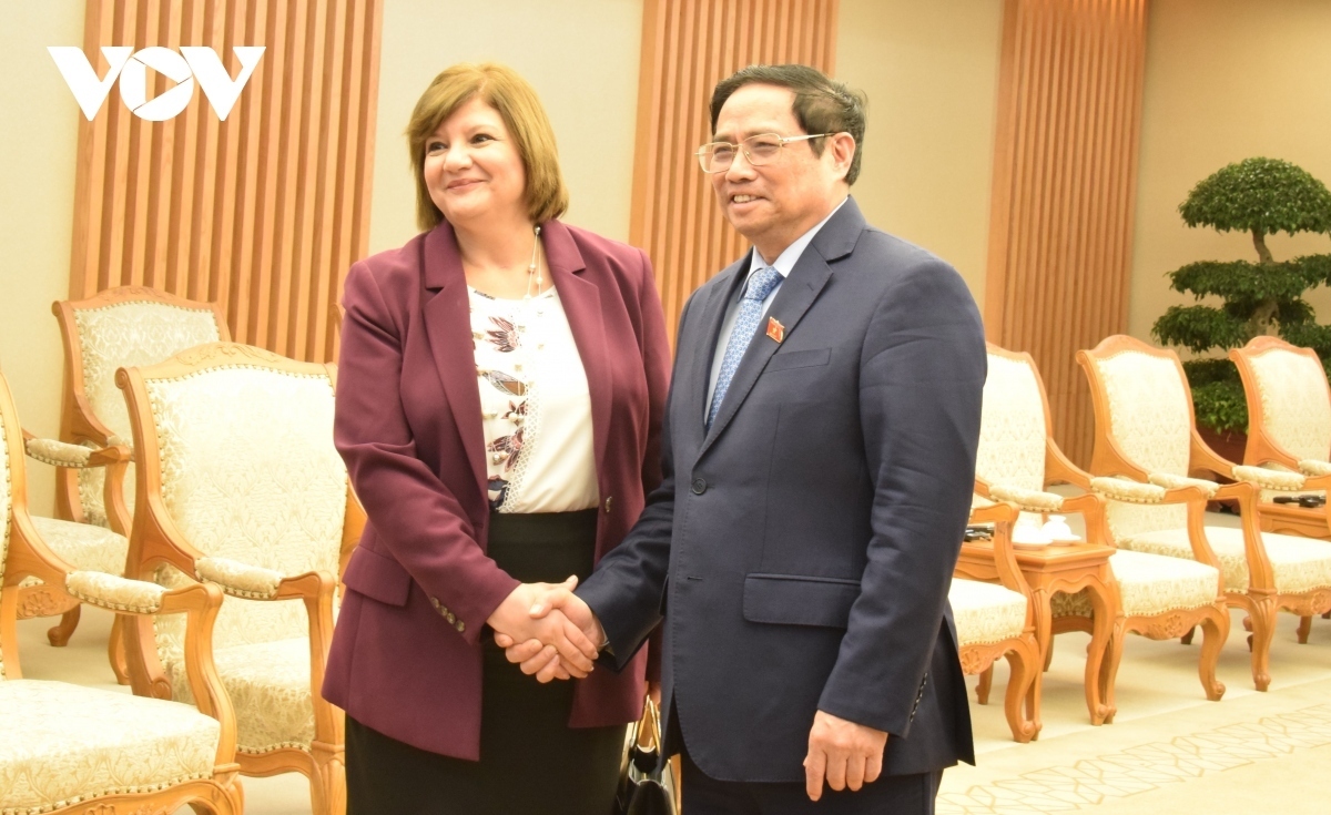Egyptian Ambassador Amal Abdel Kader Elmorsi Salama and Vietnamese Prime Minister Pham Minh Chinh. |