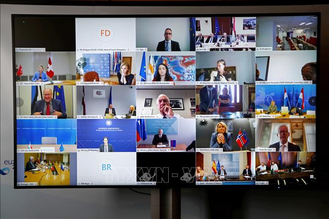 EU Interior Ministers attend a virtual talks on new EU Pact on Migration and Asylum on October 8, 2020. (photo: AFP/VNA) |