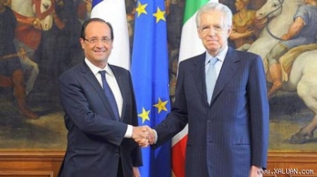 | French President Francois Hollande and Italian Prime Minister Mario Monti |