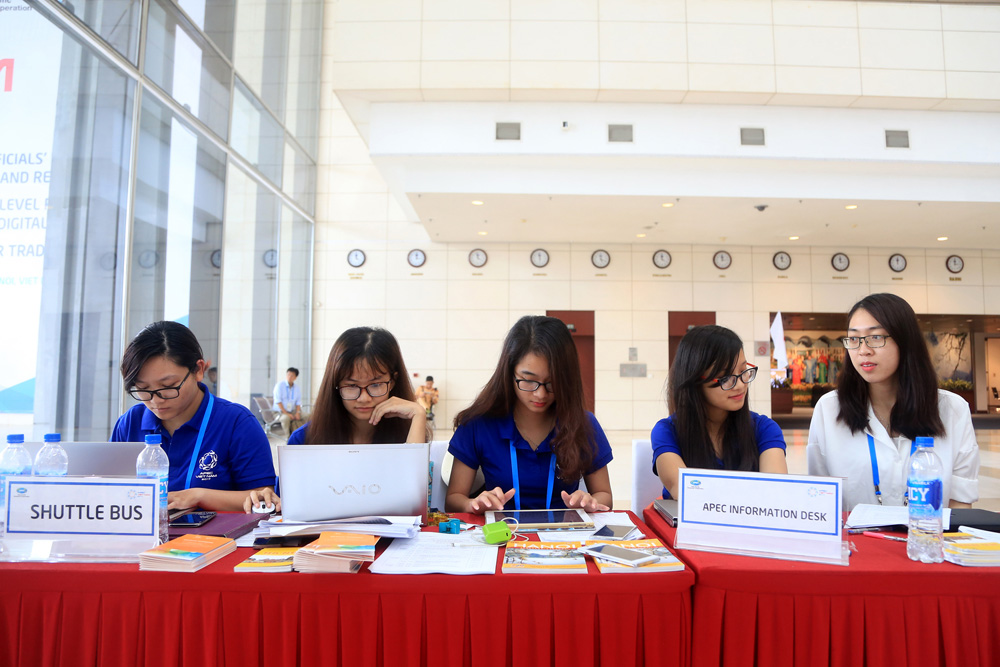 Volunteers and communicators should be fluent in a foreign language such as English, Chinese, Japanese, Korean, or Spanish. They have been studying APEC economics, APEC history, and APEC Vietnam 2017.
