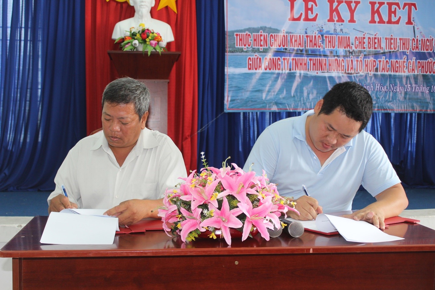 The tuna exploitation, purchasing, processing, distribution chain model is managed by the Thinh Hung Company, a frozen seafood processor, and the fishing cooperative of Phuoc Dong commune in Khanh Hoa province, who enforces quality standards and ensures that all catches are bought at the market price. 30% of the tuna in the program has been rated A.