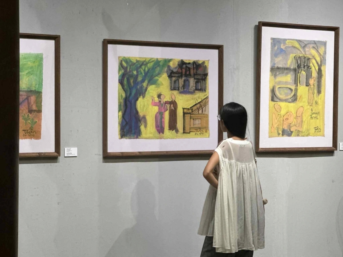 Visitor Nguyen Thi Thuy Trang from Hanoi was particularly moved by the folk-inspired visual storytelling in certain of these artworks.
