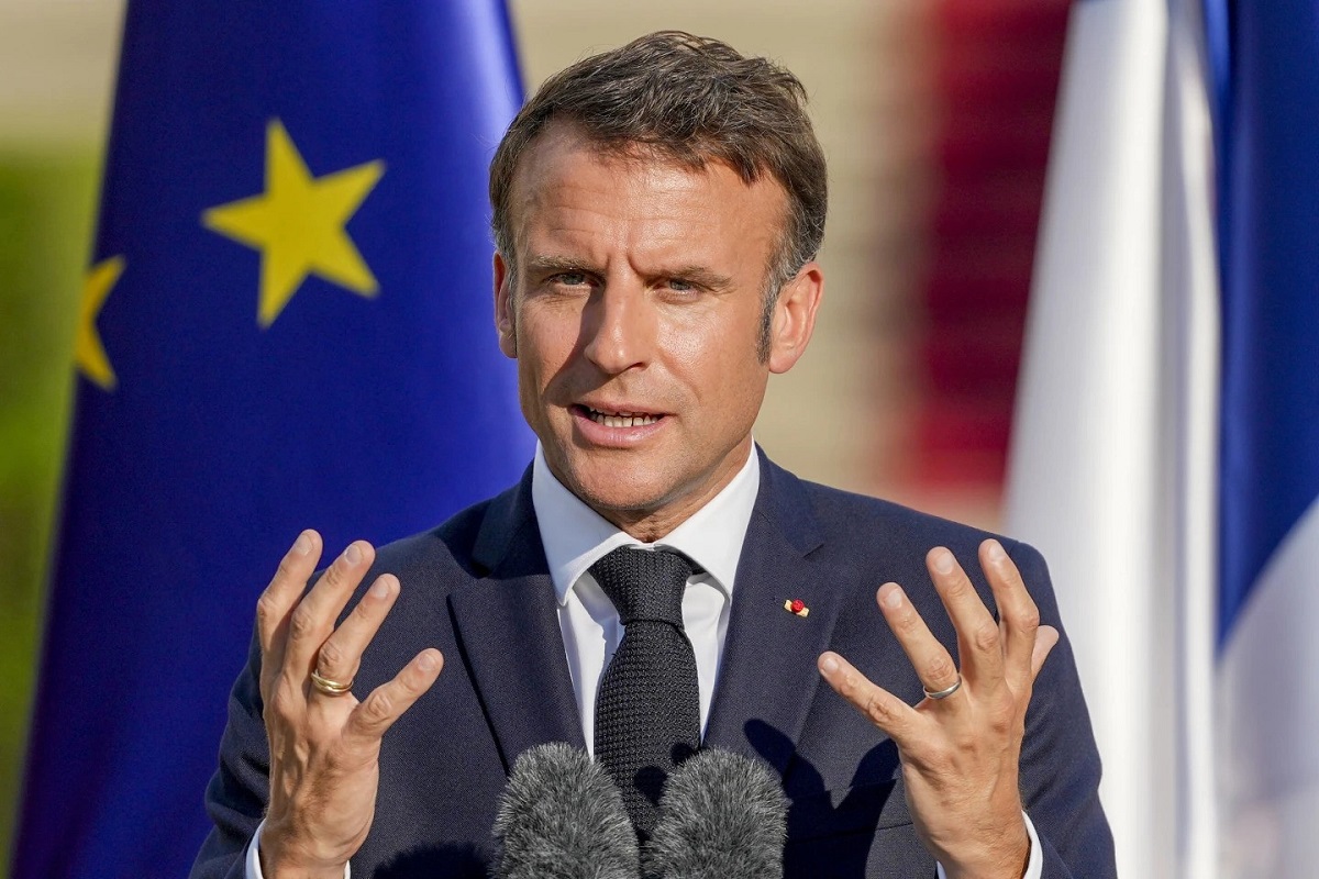 French President Emmanuel Macron at the press conference in Berlin, Germany, May 26, 2024. (Photo: Markus Schreiber/AP) |