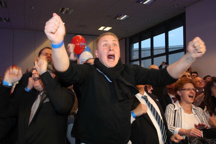 ![]() AfD supporters react after state election exit polls are announced- Photo Sebastian Willnow/AFP |