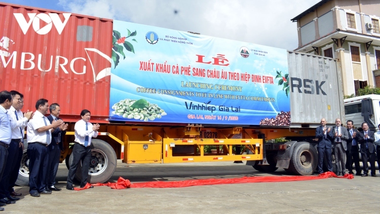 A ceremony to export coffee to the EU under the EVFTA (illustrative photo: VOV) |
