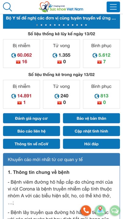The interface of the application is simple and easy to use and its content includes a map of Covid-19 infections in Vietnam, official information about the epidemic, and advice from health agencies.