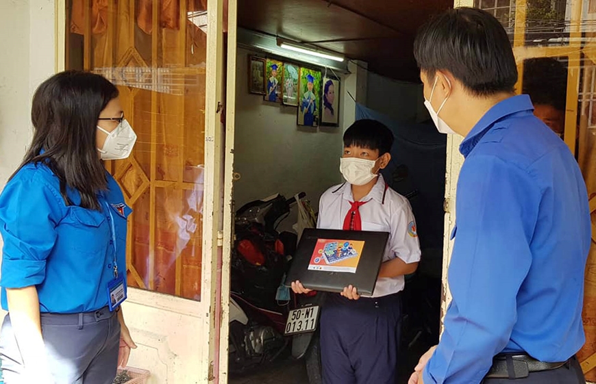 ![]() Ho Chi Minh City's Youth Union gives a laptop to a student orphaned by COVID-19. (Photo: qdnd.vn)