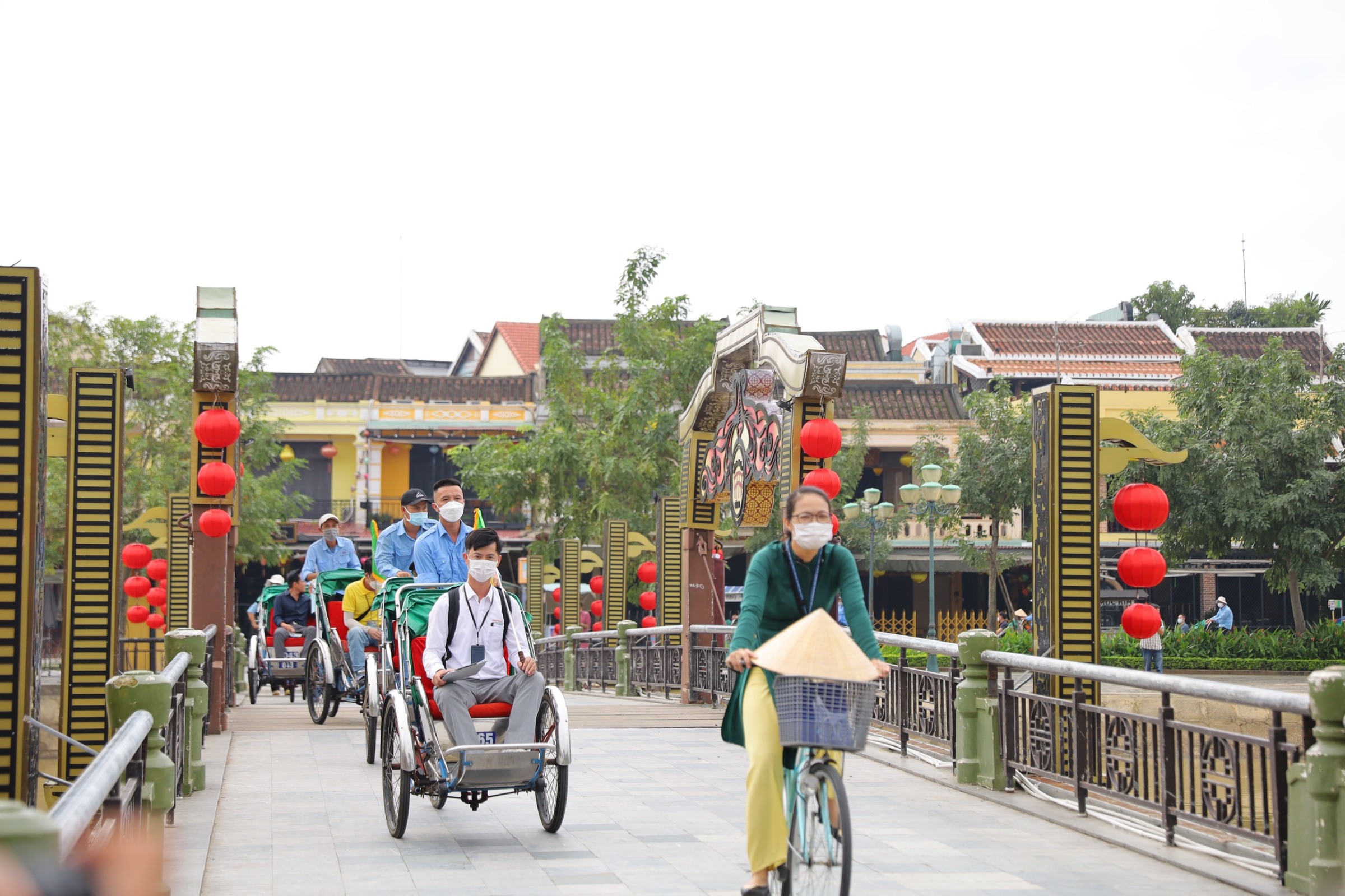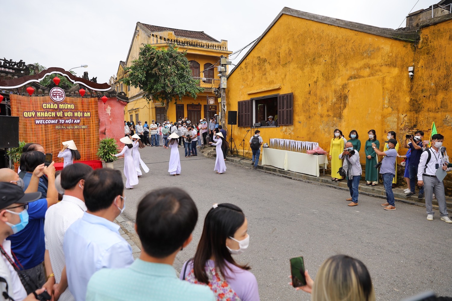 The Quang Nam provincial Department of Culture, Sports and Tourism and Hoi An administrators set up a stage at the Chua Cau roundabout to receive their first foreign visitors in two years.