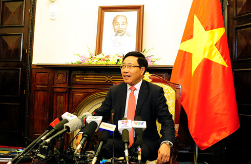 | Deputy Prime Minister and Foreign Minister Pham Binh Minh talked with reporters |