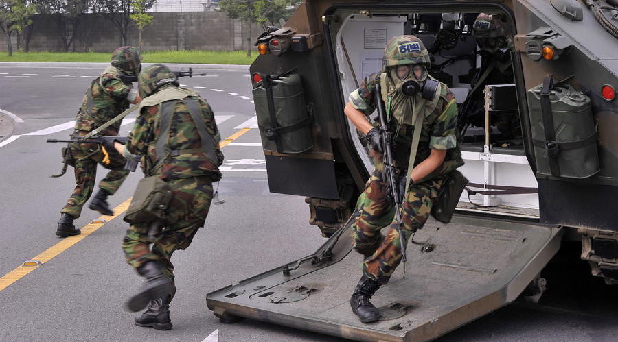 ![]() South Korean soldiers attend an anti-terrorism drill in Daegu, southeast of Seoul, as a part of the Ulchi Freedom Guardian (UFG) military exercise of South Korea and U.S. forces. File photo. © South Korean Air Force / Reuters |