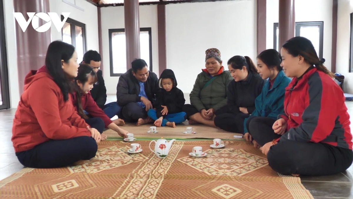 The Lang Nu resettlement area, situated on a high hill, comprises 40 stilt houses in the traditional Tay architectural style. Each 100-square-meter house has auxiliary structures, a vegetable garden, and a flower garden. There is also a 300-square-meter community house and a 200-square-meter school for kindergarten and primary students which is equipped with modern telecommunications, electricity, and water. A paved road leads to the village.