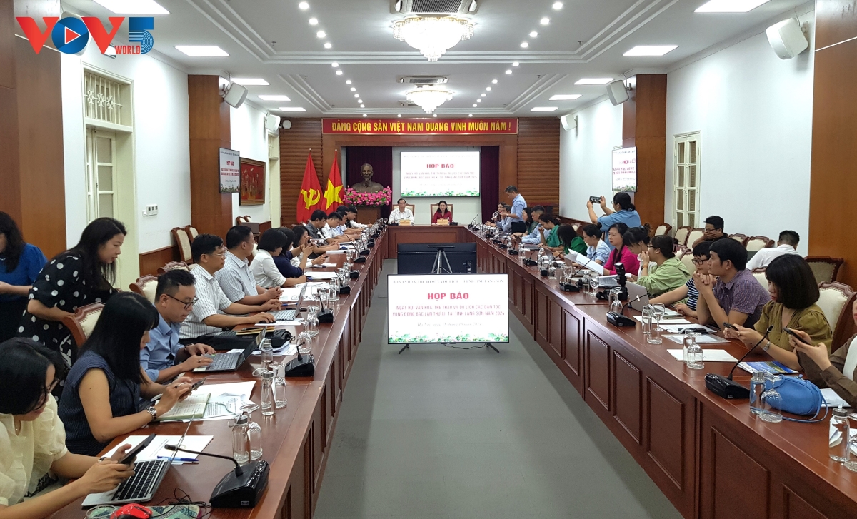 At the press conference to announce the The 11th Culture, Sports, and Tourism Festival for Northeast ethnic groups will open in Lang Son city (Photo: VOV) |