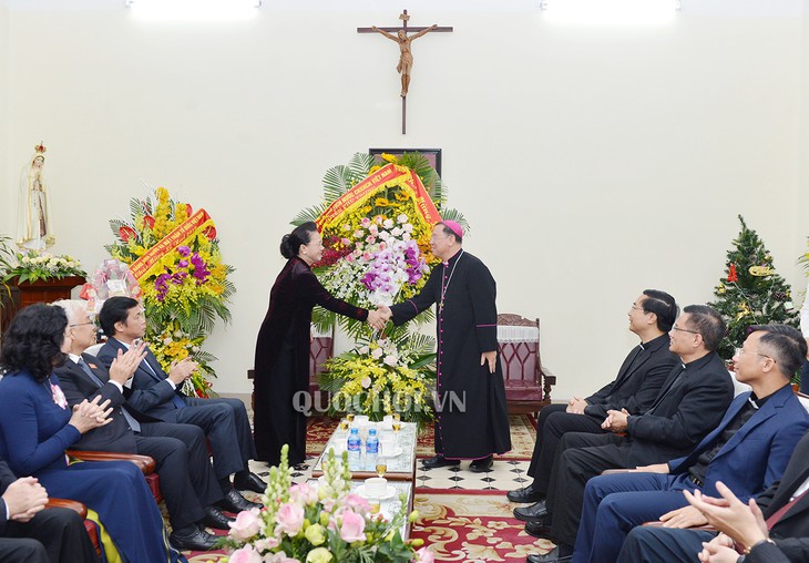 National Assembly Chairwoman Nguyen Thi Kim Ngan visited the Hanoi Archdiocese to congratulate priests, bishops and parishioners a merry Christmas full of God’s grace. She also visited the Vietnam Catholic Solidarity Committee to share the joy with all Vietnamese Catholics and spread the message of respecting religious freedom.