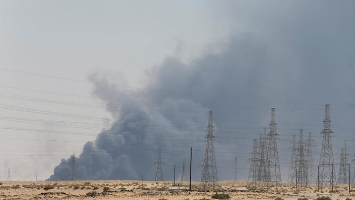 Smokes are seen on Abqaiq, an oil company in Aramco, Saudi Arabia, after a drone airstrike, on September 14, 2019 (Photo REUTERS / Stringer)