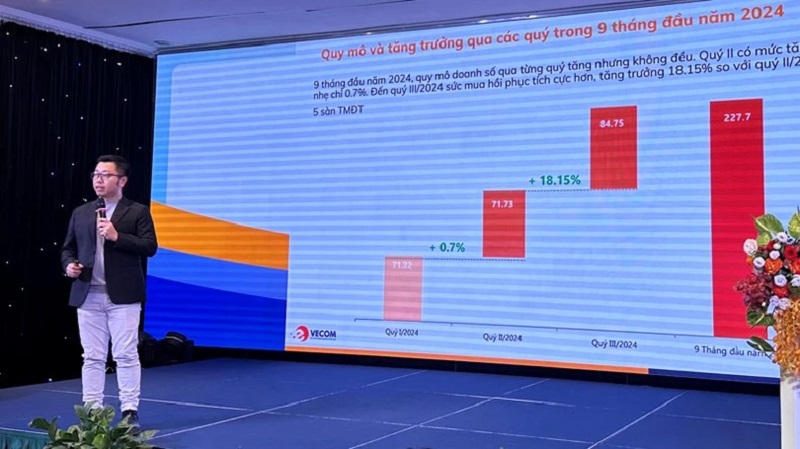 Photo 2: Representative of Vietnam E-commerce Association presents shopping trends via e-commerce channels, difficulties and challenges for Vietnamese enterprises. Photo: Nhan Dan Newspaper