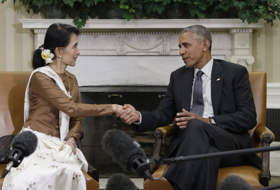 President Barack Obama and Myanmar's leader Aung San Suu Kyi meet in the Oval Office of the White House last month.(photo: Carolyn Kaster/AP) |