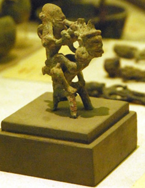 ![]() Bronze statue of a panpipe-playing couple piggybacking |