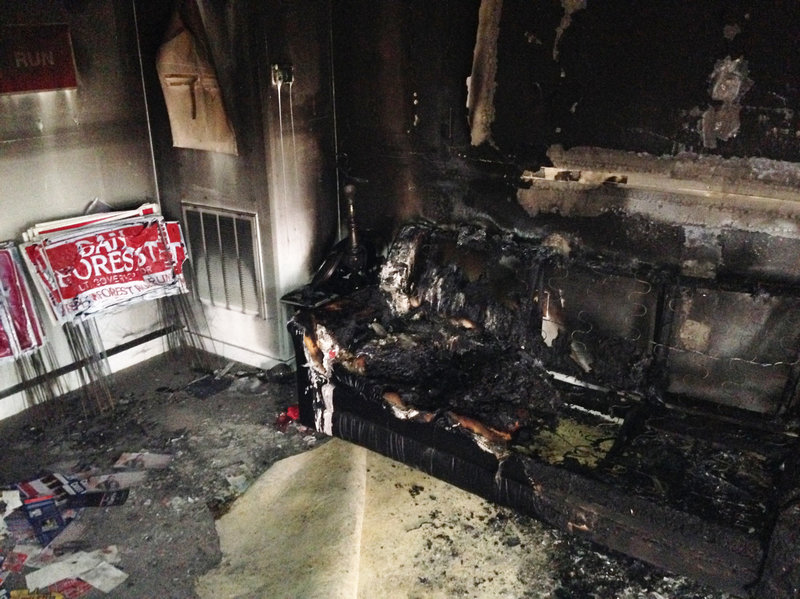 ![]() A burned couch rests next to warped campaign signs at the Orange County Republican Headquarters in Hillsborough, N.C. (photo: Jonathan Drew/AP) |