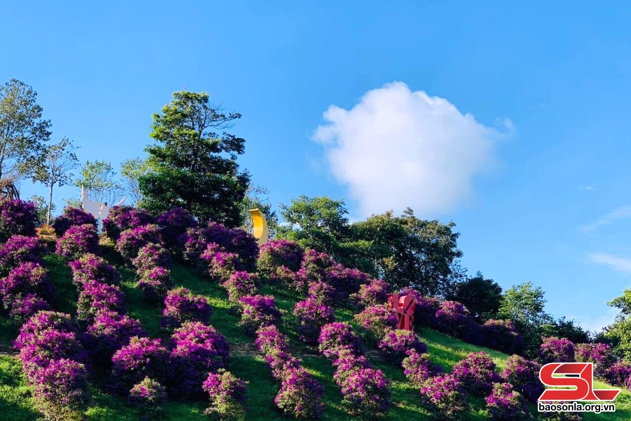 Ms. Bui Hoai Linh, Deputy Director of the Pha Din Tourism Cooperative, said: “The Pha Din Top tourist area is the highest point in Pha Din Pass. Here, nature is blessed with a most favorable climate for growing flowers. This is also a unique characteristic of the tourist area. Many types of flowers grow here, such as cherry blossoms, myrtle flowers, and purple lavender. In addition, there are seasonal flowers such as roses and chrysanthemums”