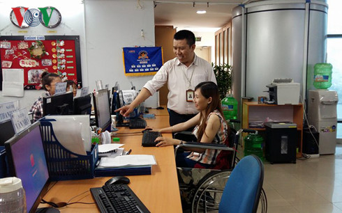 | A disabled person is given counseling at her workplace (Photo: VOV) |