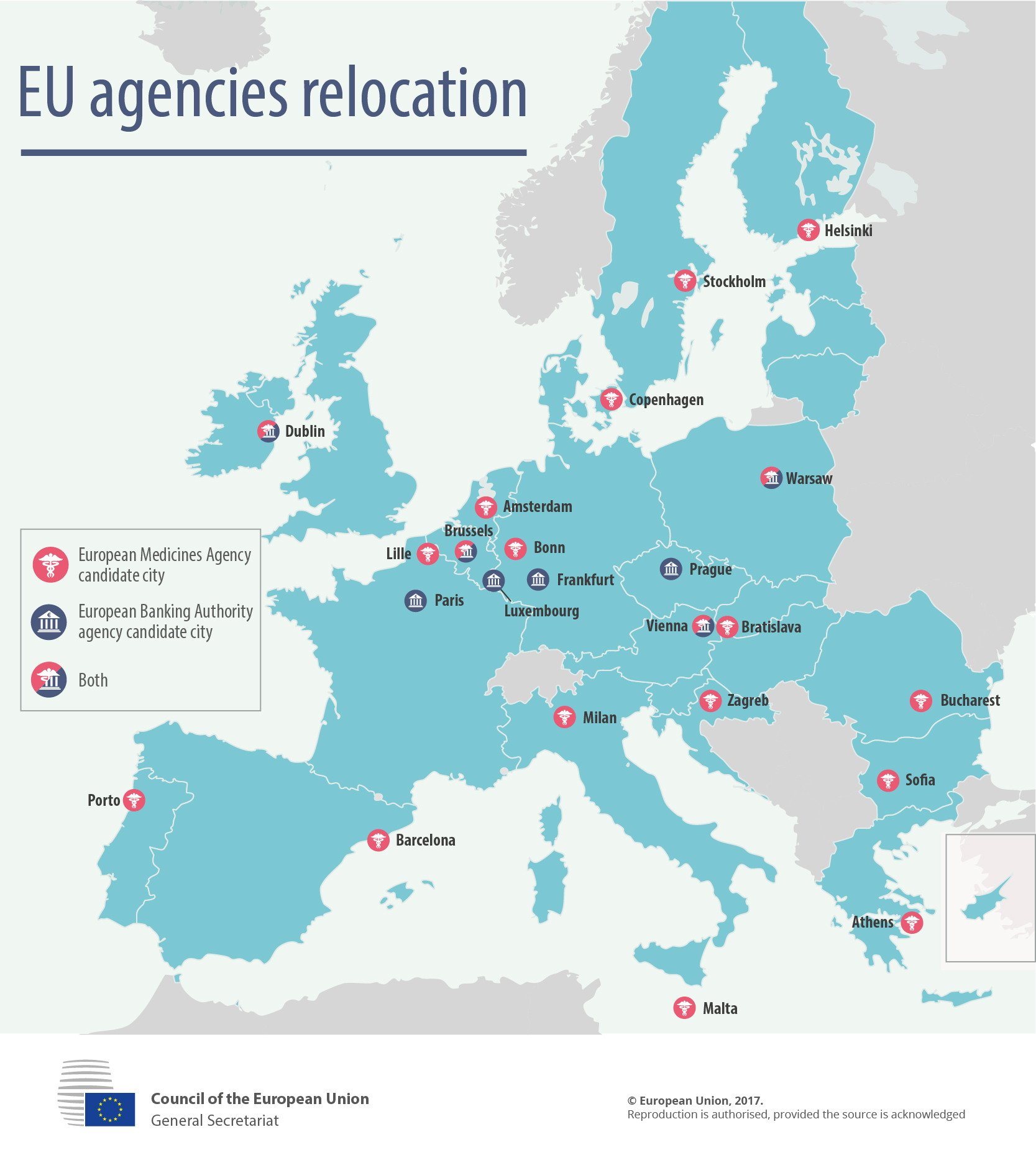 The report says the 27 EU members will decide which city will host the European Banking Authority (EBA) and European Medicines Agency (EMA).