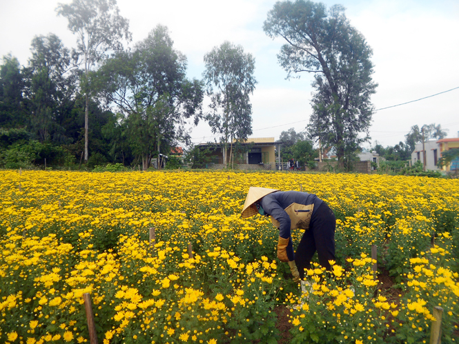 52-year old Phan Thi Mien of Ly Trach commune has grown Da Lat chrysanthemums for 10 years. She says local people often begin planting flowers for Tet in the 9th lunar month. This year, due to prolonged floods, the growers must be very careful at each step from ploughing to decontaminating the soil, to nurturing the plants and need to closely watch the weather. Because of the prolonged rain and cold, flower growers have to spend more time and efforts to assure a successful flower season.