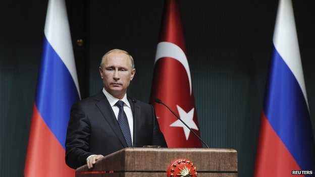 The South Stream Gas Project is a huge project by Russia’s Gazprom group to transport natural gas from Russia to the Black Sea and central and southern Europe, including Bulgaria, Serbia, Hungary, Greece, Slovenia, Croatia, and Austria. With a planned annual capacity of 63 billion cubic meters of gas, the pipeline will directly connect Russia and Europe without crossing Ukraine. On December 1, Putin announced he was canceling the project and starting a new pipeline across Turkey, a non-EU country.