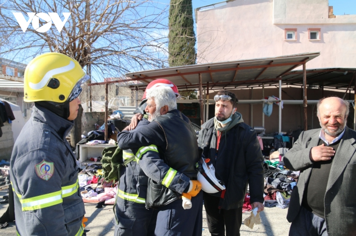 Turkish people thank Vietnamese rescue workers. (Photo: VOV journalist based in Cairo) |