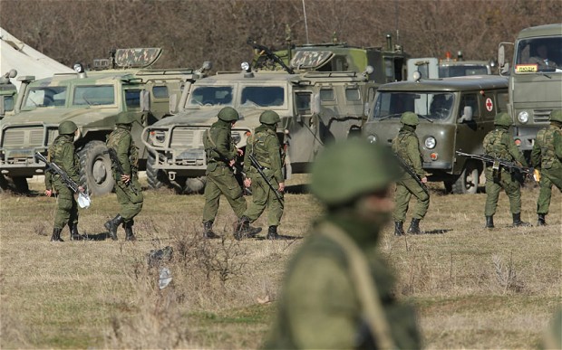 | Supposed Russian soldiers stand outside a Ukrainian military base in Crimea Photo: Sean Gallup/Getty Images |