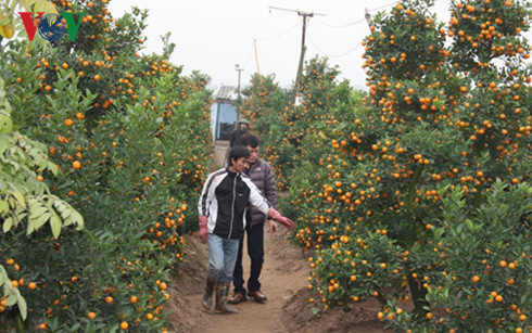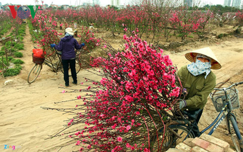 In Hanoi, horticulture markets like Nghi Tam, Quang Ba, and Hoang Hoa Tham are selling Tet flowers and trees: peach and apricot blossoms, orchids, and kumquat trees, and many other varieties of flowers with prices ranging from 3 to 200 USD per bunch or per pot. Dang Van Tien, owner of a kumquat garden in Nhat Tan village on the outskirt of Hanoi, said: “People come here to buy kumquat trees, because, traditionally, kumquats represent Vietnamese Tet.”
