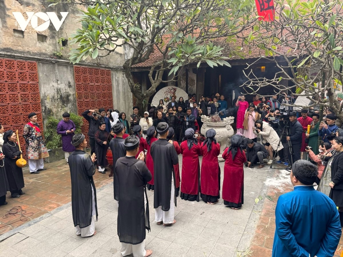 Traditional Tet customs are re-enacted at Kim Ngan temple in Hang Bac street. (photo: VOV) |