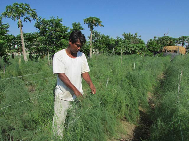 | Hua Van San is tending asparagus (photo: Xuan Nong) |