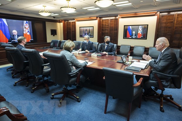 US President Joe Biden and Russian President Vladimir Putin during an online conversation on December 7, 2021. Photo: AFP/VNA |