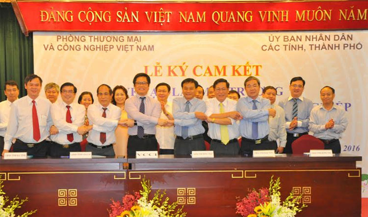 ![]() The signing ceremony facilitating business environment for enterprises between the Vietnam Chamber of Commerce and Industry (VCCI) and 32 provinces in the south and central regions (photo: baocongthuong.com.vn)