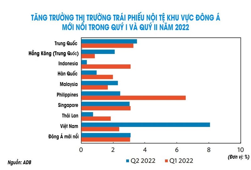 Local currency bond market growth in emerging East Asian countries and territories in Q1 and Q2 2022. (Photo: tapchitaichinh.vn) |