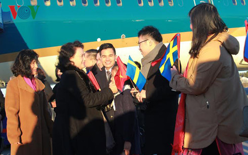 | National Assembly Chairwoman Nguyen Thi Kim Ngan is welcomed in Sweden's airport |