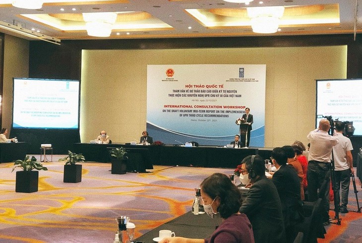 The international consultation workshop on the draft voluntary mid-term report on the implementation of UPR third-cycle recommendations Oct 22, 2021 (photo: Thu Trang) |