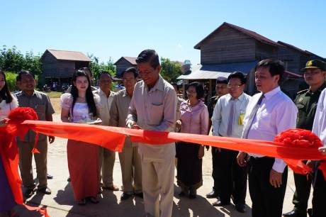 | A representative from Hoang Anh Mang Yang K company cut the ribbon the inaugurate a school in Rattanakiri province, Cambodia, in 2015. (photo: tapchicaosu.vn) |