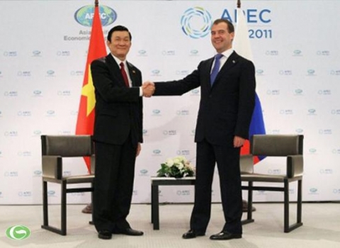 | President Truong Tan Sang and former Russian President Dmitri Mevedev at 2011 APEC Summit |