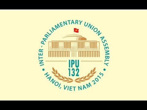 ![]() Vietnamese National Assembly Nguyen Sinh Hung and IPU President Abdelwahad Radi introduce a logo of the IPU-132 |
