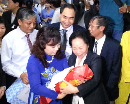 ![]() Vice President Nguyen Thi Doan and Minister of Health Nguyen Thi Kim Tien welcome the 90 millionth Vietnam citizen