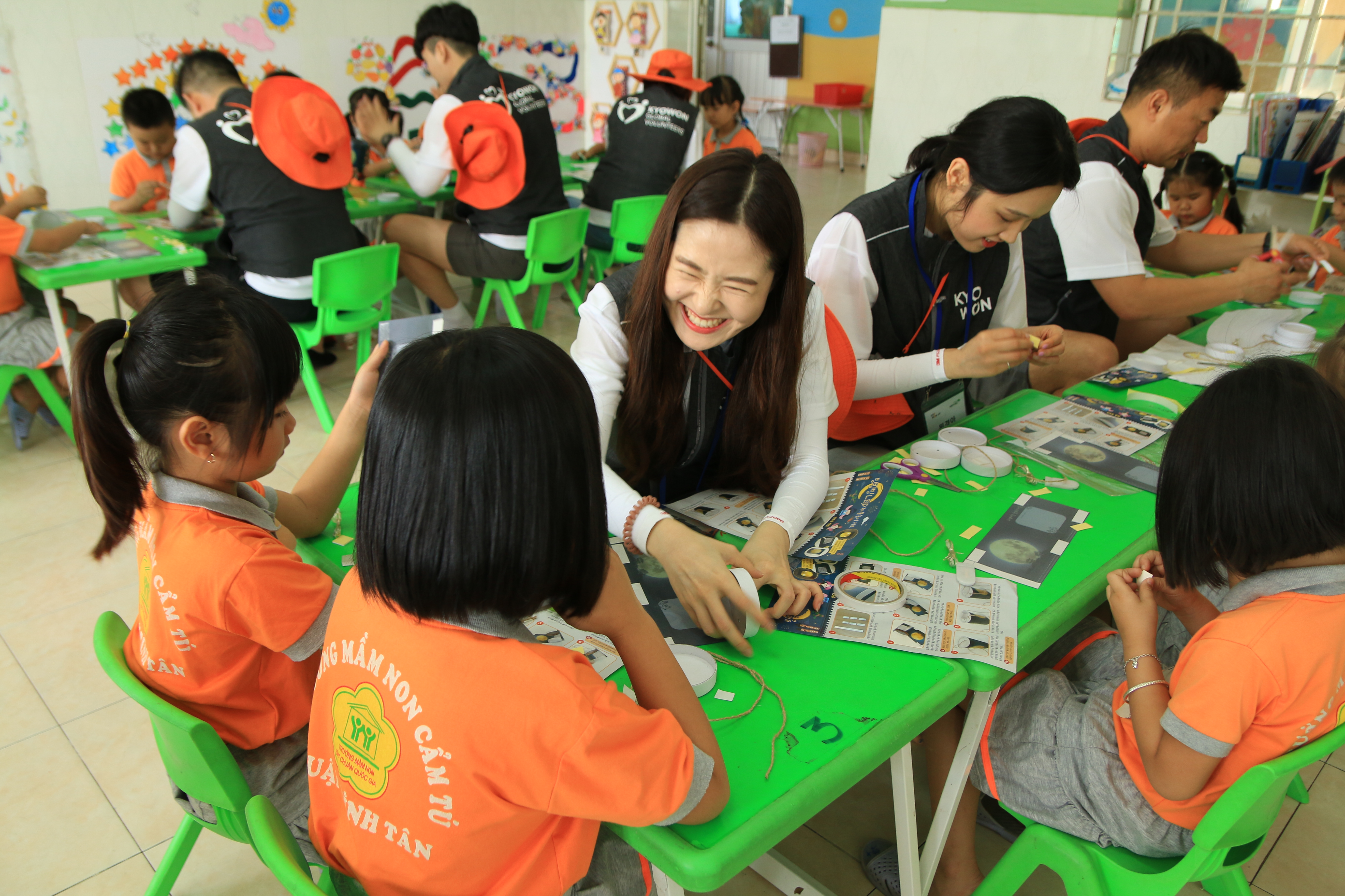 Together with the teachers of Cam Tu kindergarten, they created murals, repaired the playground and toys, and organized games to teach the kids about Vietnamese and Korean culture. They translated a set of Story Phonics from English into Vietnamese and gave the school 600 books.