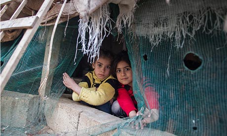 ![]() Esma, 7, and a friend peer out of a tent in Lebanon's Bekaa valley that has been her home since her family fled Syria last year. Photograph: Sam Tarling/Save the Children |