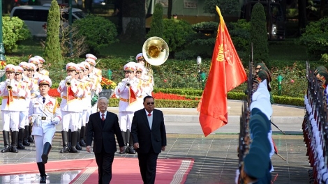 (VOVWORLD) -General Secretary of the Lao People’s Revolutionary Party (LPRP) and President of Laos Bounnhang Vorachith begins a three-day official visit to Vietnam on Tuesday. This is his second official friendly visit to Vietnam during his tenure of 2016-2021. The visit reflects Laos’ consistent external policy of treasuring and promoting its friendship, special solidarity, and comprehensive cooperation with Vietnam. Both countries will review the Vietnam-Laos Friendship and Solidarity Year 2017 and begin a new cooperation period.