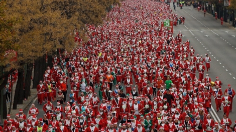 Charity fund-raising Santa race